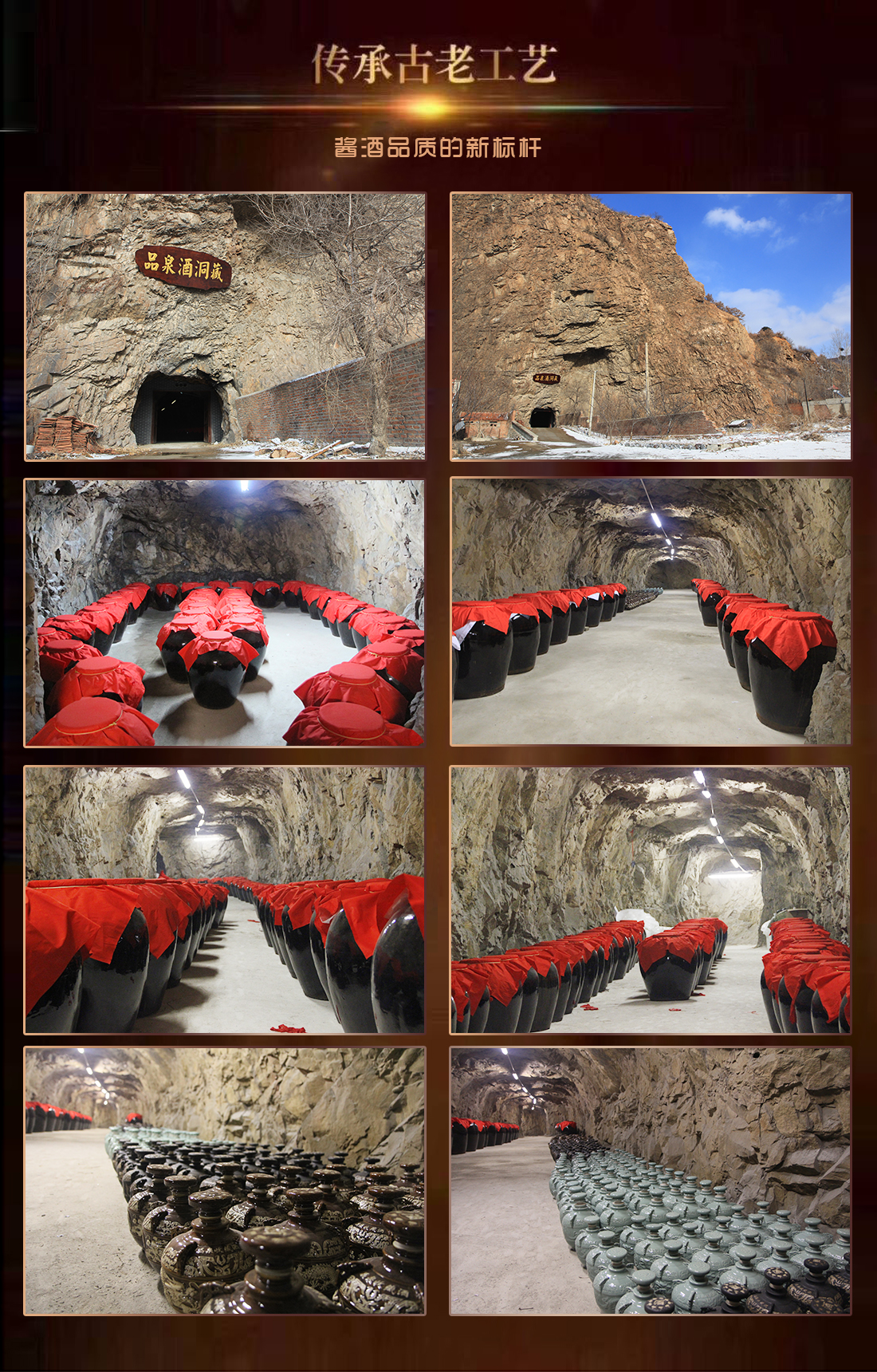 品泉,源于擁有千年歷史的 “品字神泉水”,泉水清澈甘冽;品泉窖酒以“品字神泉水”加五糧為主要原料,承襲百年醇熟釀酒工藝。品泉酒經長期洞藏,在天然洞內放置大量特制陶壇,將原酒密封入壇,藏入洞中。陶壇壁上有許多毛細孔,透氣性好,酒液既不會滲漏,又可以與空氣接觸自由呼吸,有利于白酒的老熟與出香。同時,由于洞穴具有冬暖夏涼的自然特性,對凈化酒體、增加酒體的柔綿度相當重要。洞和地窖不一樣,洞內空氣流通,而地窖則是閉風的。洞的四壁是巖石,而地窖大部分是土壤。巖石蘊含豐富的水份,更適合各種微生物生長。此酒馥郁優雅,綿柔厚重,余味悠長,堪稱酒中珍品。